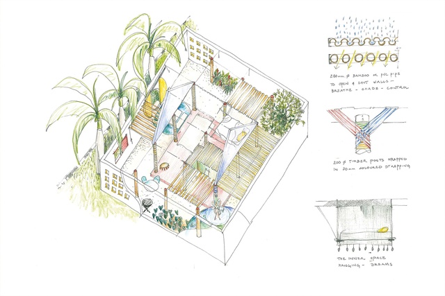 Long before the Mitchell & Stout canon was formalised, here is its intimate precursor: sketchy lines, suspended fabrics, handmade gestures. This is not a diagram of a solution but the spatialisation of dreaming. The suspension of certainty in favour of wonder.