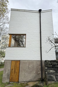 Alvar Aalto’s own home is now a museum with a booking list to get inside. Aalto lived here first with Aino and their family after they built the house in 1936, and then, after Aino’s death, with his second architect wife, Elissa. With no cover outside, I wander across the road to where a man in a large coat is exiting a rectilinear apartment building through a series of external doors. He knows all about the Aaltos, of course, with their white brick and black matchstick asymmetric façades. The Aaltos’ front door opens — only one door, I note, but there’s another one layered inside if you look. Beyond that comes the crafting of life and work practicalities that enabled the office to work out of the house until Studio Aalto was built almost 20 years later. It’s unlikely that any shouts of “Close the door, you’re letting the heat out” were aimed at Alvar, for his drawing board is surrounded by radiators and literally sits on the sauna.