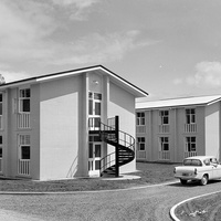 The establishment in 1964 of a university in Hamilton created a number of opportunities for local architects. The firm was responsible for not only these residential halls, which are still in use today, but also the Warden’s House, the Chaplain’s House, the conversion of a shed to the Student Union Building and the Vice-Chancellor’s House. The client for the halls was a committee of the Bryant Trust Board and, although the University ultimately approved the project, the halls were paid for by the Bryant Trust, entirely as a gift to the University and to the city of Hamilton.