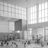 This is one of several Salvation Army commissions brought to the firm by Tom Smith, who was active in that organisation. The original building comprised three large halls, with the main hall accommodating 250 people and a gallery for a further 80. A raised platform allowed for a band of 38 and a choir of 50. Special attention was given to acoustics, with vertical pivoted fins along both internal side walls allowing for adjustments for different sound conditions. Extensive additions to the original building completed in 2009 were sensitive to the original design. See Home and Building July 1969.