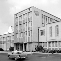 The firm worked as a consultant for the Waikato Hospital Board for many years, and completed major projects in Hamilton, Rotorua and Thames. This office building is in the city centre but the practice also designed a number of large buildings on the grounds of Waikato Hospital, including the Administration Block (1937). The hospital’s rapid expansion since the 1950s has seen many E&W buildings demolished to make way for new facilities, so this surviving building is all the more valuable to the city’s history. Today, Waikato Hospital is the largest single-site hospital facility in the southern hemisphere.