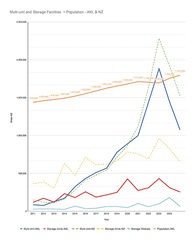 The push for yield maximisation and ‘efficiency’ of design in medium-density housing (MDH) is eroding functional elements historically associated with the family home. Where design minimums are not legislated, utility spaces like storage are targeted as non-critical, running the risk of being reduced in scale or even eliminated. Storage space has become a casualty of austerity and, ironically, a symbol of a successful free market in action. Population growth coincident with the reduction of domestic storage in MDH is driving the rising demand for offsite storage facilities as necessary urban infrastructure. The private sector has embraced self-storage as a profitable asset class — cheap to build, low risk and offering stable, long-term revenue, thanks to persistent demand. Unitary Plan intensification in Auckland has driven the evolution of a new, highly rationalised building type: the multistorey storage facility.